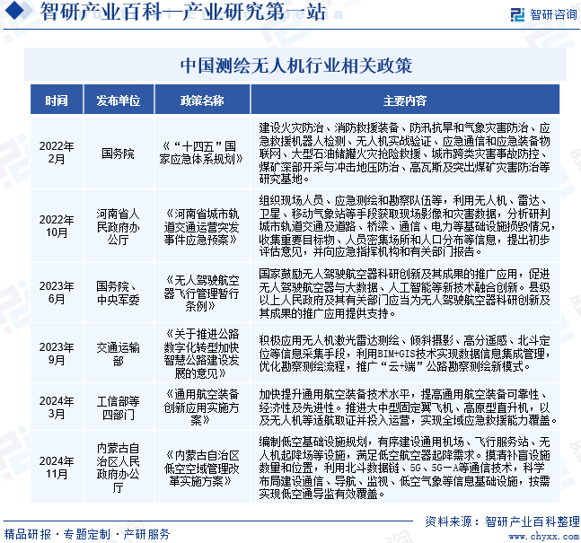 智研财产百科是智研征询推出的产研东西平台,努力于为您供给全方位的百科式财产消息查询办事。智研征询践行用消息驱动财产成长的企业,完美和丰硕企业方,依托财产百科平台提拔消息价值,持续为行业成长及企业投资决策赋能。测绘无人机财产百科做为测绘无人机财产一坐式系统化研究东西,全面归纳了测绘无人机财产学问消息,内容涵盖测绘无人机财产的定义、分类、政策、财产链、合作款式、成长趋向等,并依托消息手艺成立智能互链的行业学问图谱,为行研从业者及相关投资者供给深切的洞察力和全面的消息。智研征询以“用消息驱动财产成长,为企业投资决策赋能”为品牌。为企业供给专业的财产征询办事,次要办事包含精操行研演讲、专项定制、月度专题、可研演讲、贸易打算书、财产规划等。并供给周报/月报/季报/年报等按期演讲和定制数据,内容涵盖政策监测、企业动态、行业数据、产物价钱变化、市场机缘及风险阐发等。前往搜狐,查看更多。