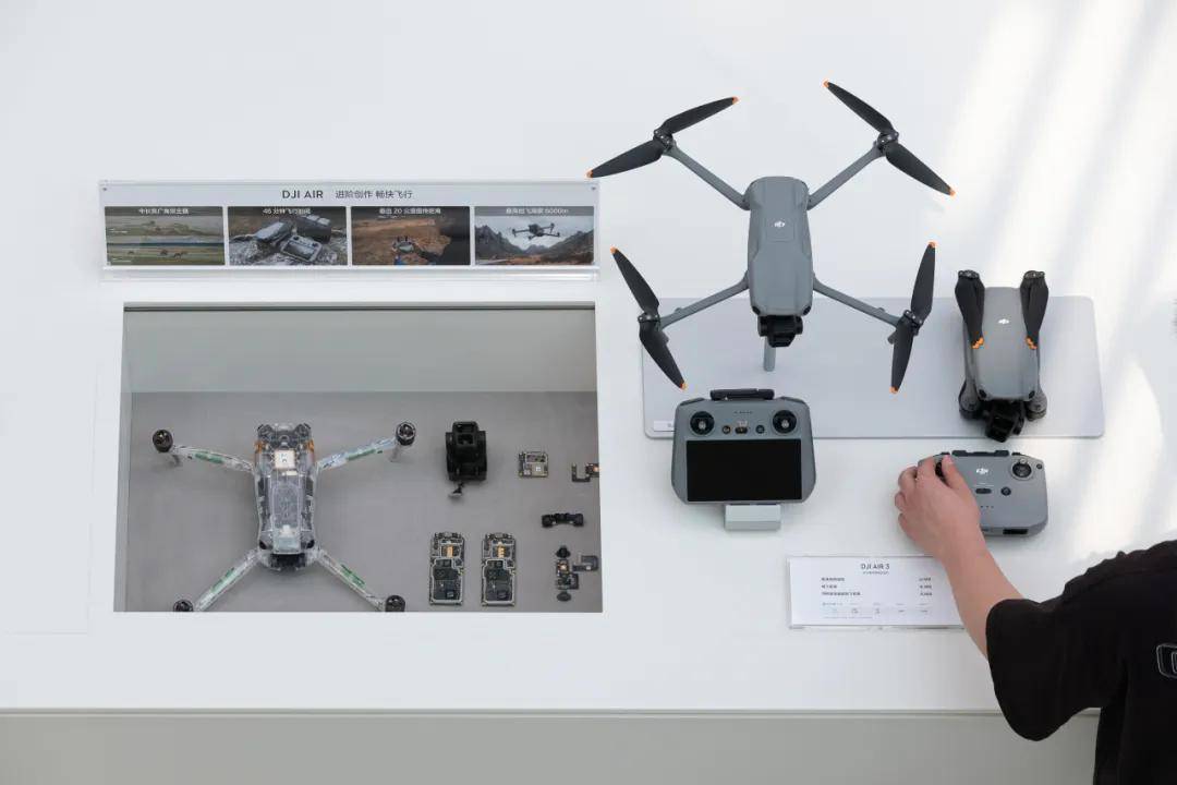 一楼是大疆的产物展现区,特地为大疆定制的悬浮感产物展现台,近40米长的动态屏幕,产物体验区及产物展现区,连系从头设想的属于大疆标记性的产物“爆炸图”,呈现出一个独属于大疆本身品牌的奇特科技空间。